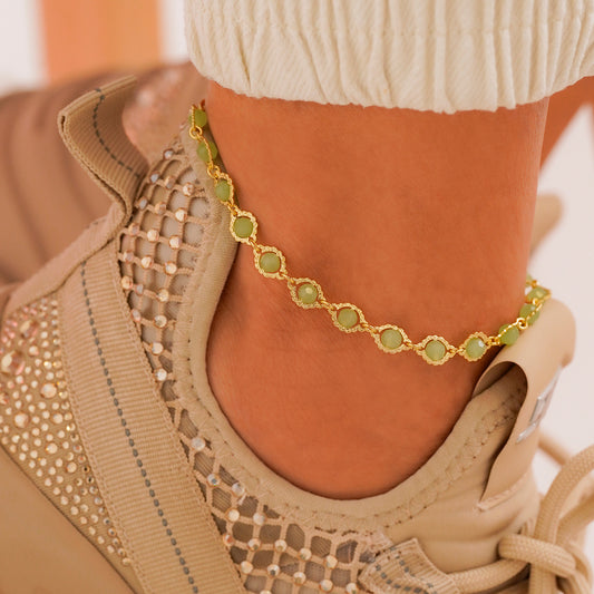 Tobillera Circonias Verde Unisex 22 Cms + Extensor