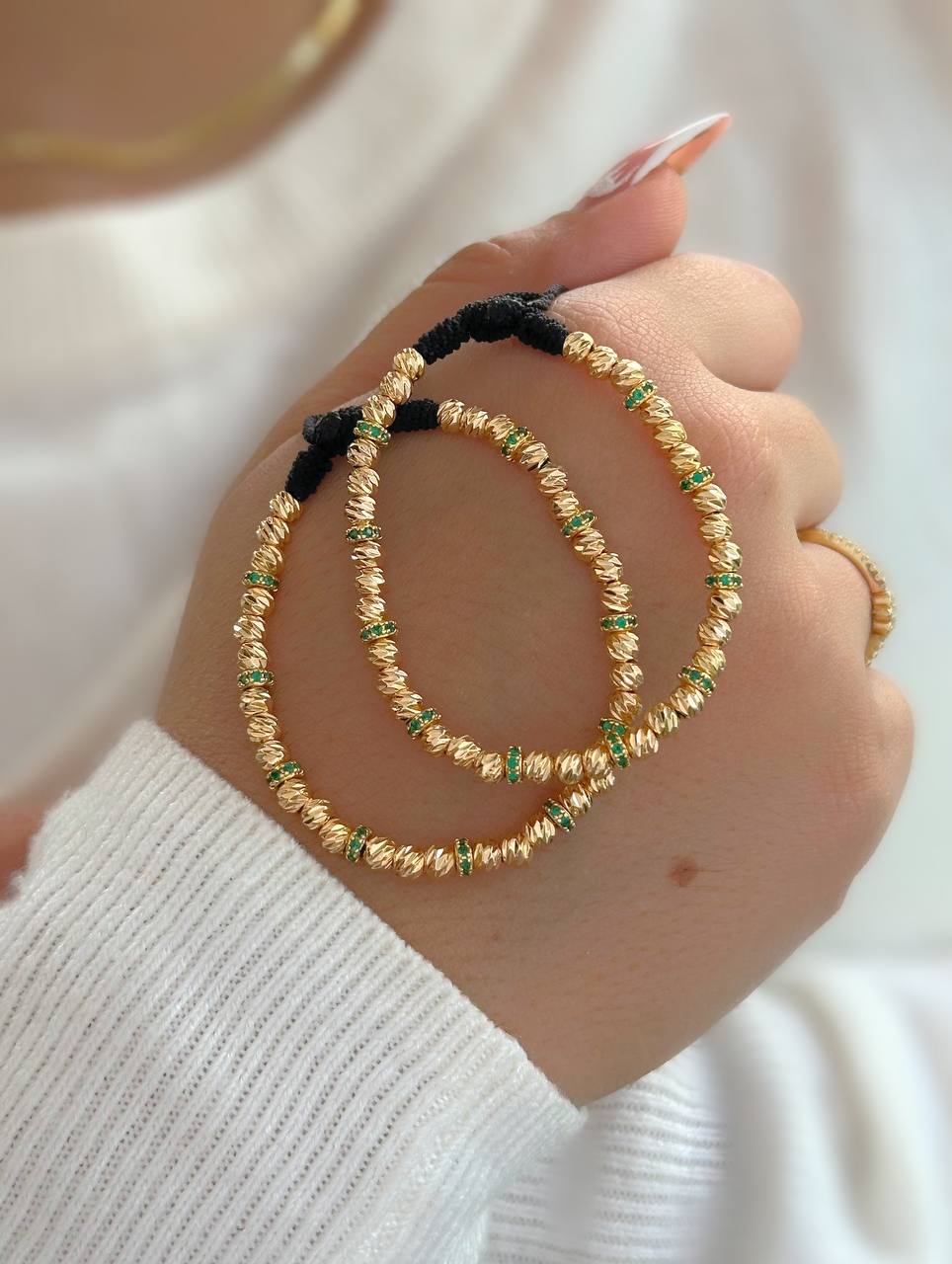 Manillas full balines italianos de 4 mm, elaboradas en oro laminado de 18K. Su diseño brillante y uniforme se realza con detalles en verde esmeralda que aportan un toque de distinción. Un dúo versátil, moderno y sofisticado, ideal para quienes aman los acabados finos y elegantes.